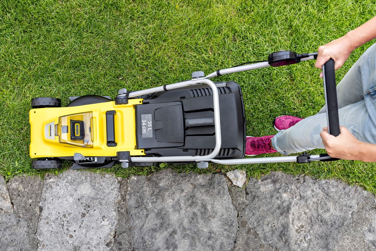Газонокосарка працює на базі акумуляторної платформи Battery Power 18 В, яка сумісна з іншими пристроями Karcher. Ширина скошування становить 33 см, що дозволяє легко маневрувати у вузьких місцях — біля парканів, клумб, дерев та вздовж доріжок. Оптимально підходить для догляду за ділянками площею до 250 м².