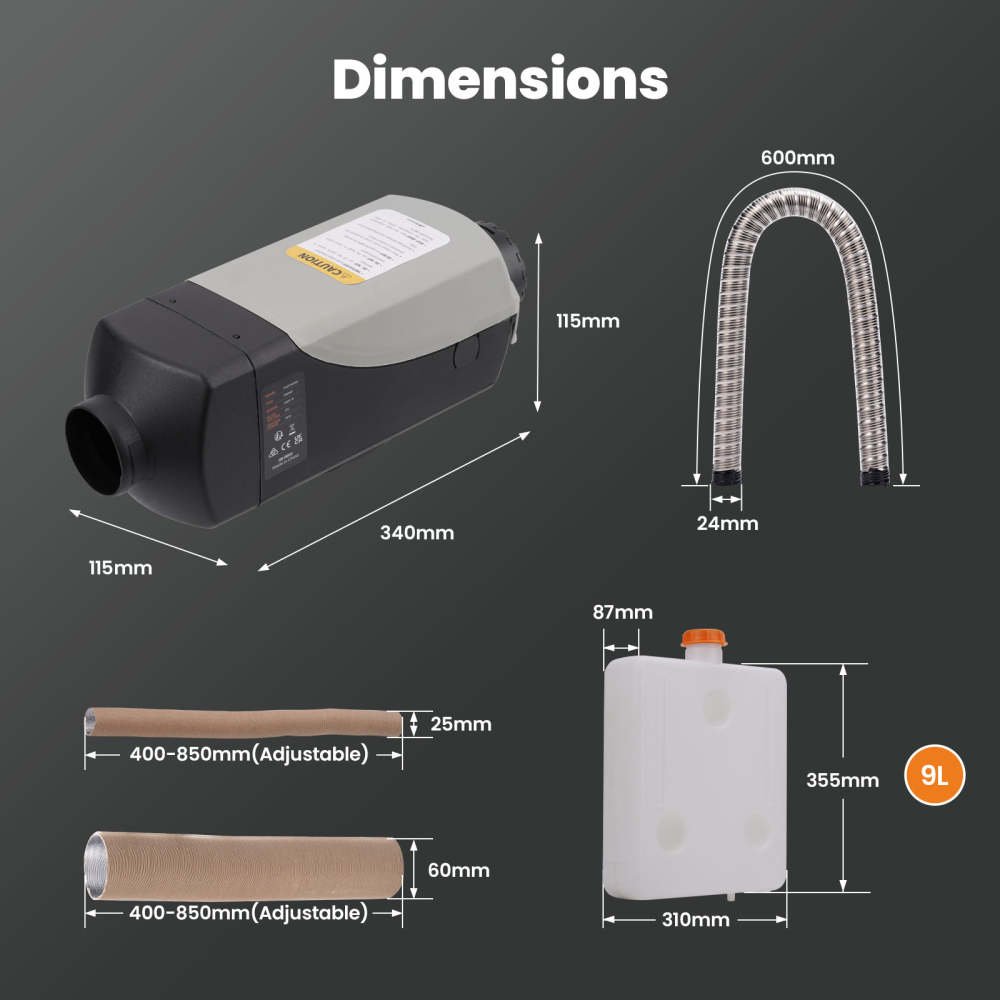 Низьке споживання палива: Витрата дизельного палива варіюється від 0,16 до 0,24 л/год, що робить цей обігрівач одним із найбільш економічних у своєму класі.