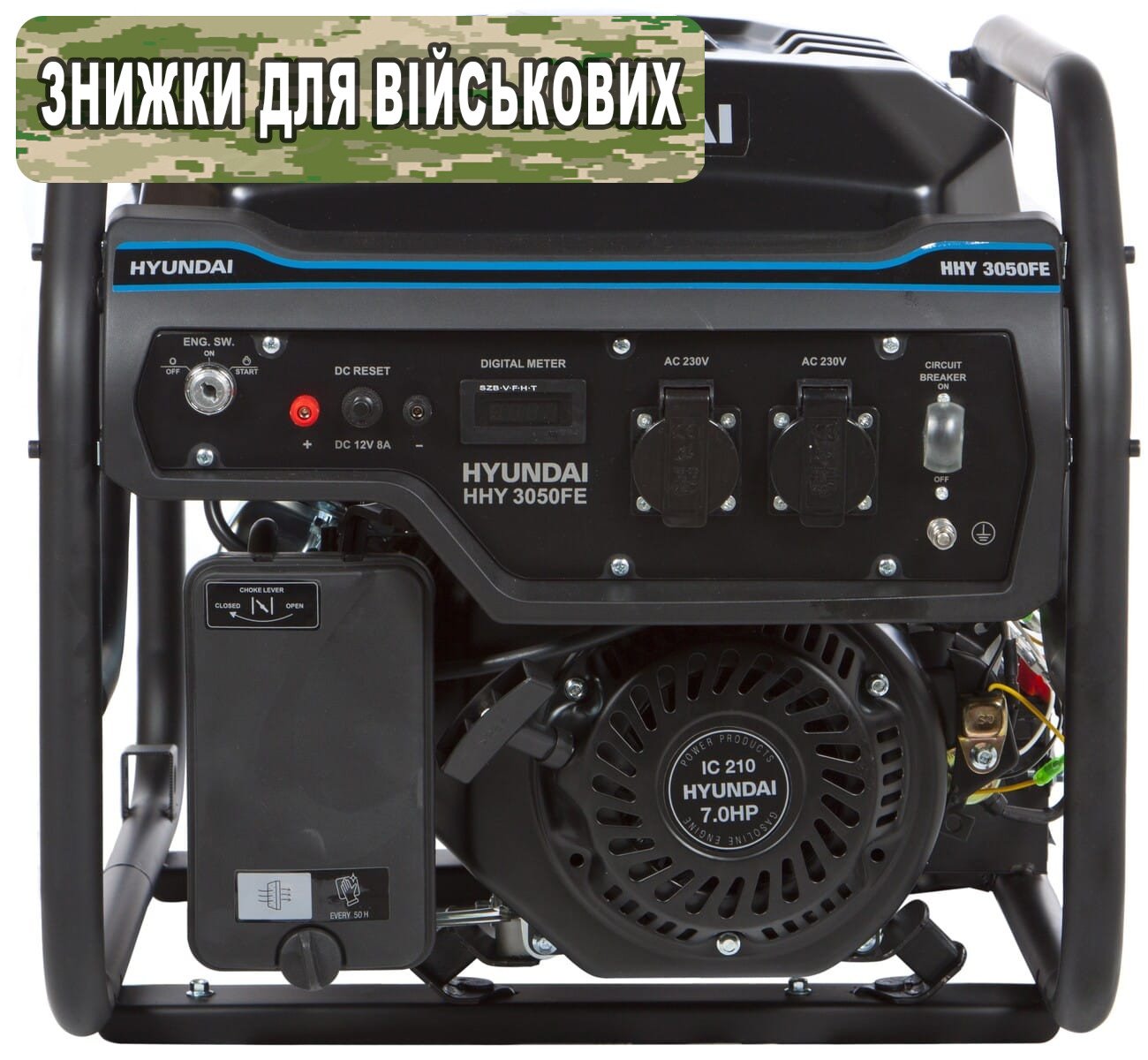 - Захист від перевантаження: генератор Hyundai HHY 3050FE автоматично вимикається при перевантаженні.