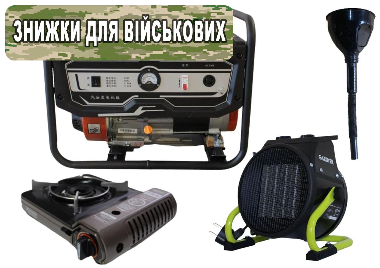 Бензиновий генератор EF Power RD3600 + газова плитка Orcamp CK-505 + електричний обігрівач Gardyer HE2000