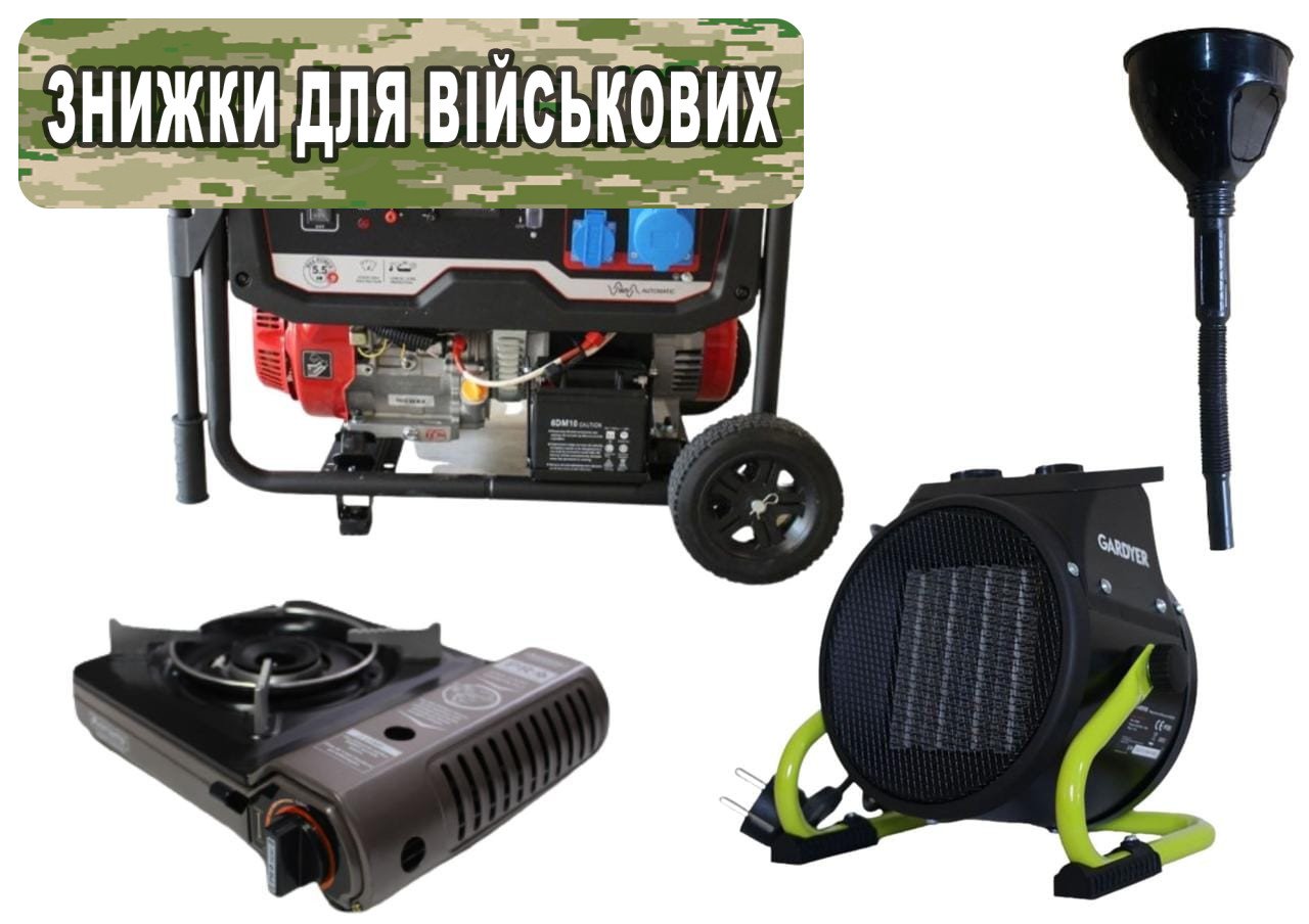 ОСОБЛИВОСТІ: Бензиновий генератор MAST GROUP RD6500E – потужний генератор для автономної та аварійної подачі електроенергії для будівельних майданчиків, саду. Підходить для постійного та тривалого користування. ПРИЗНАЧЕННЯ: Забезпечить електрикою всі прилади будинку (в тому числі енергоємні), а на будівельному майданчику – всі інструменти. ОБЛАСТЬ ВИКОРИСТАННЯ: Використовується для енергонезалежності заміських будинків, офісів, торгових точок в аварійних ситуаціях на лініях електропередачі, а також як мобільне джерело електрики для комунальних і дорожніх служб. Портативна газова плитка Orcamp CK-505 Портативна піч для кемпінгу чи далеких поїздок. Стійка та міцна, завдяки чому можна приготувати їжу у досить великій каструлі. Незамінна у будь-якій ситуації, коли ми далеко від дому і хочеться смачної, теплої їжі чи кави. Проста у використанні та легкий. Працює від газового балончика з цанговим з’єднанням. Точний контроль полум’я. Сучасна форма. Легкий та зручний дизайн. Електричний обігрівач Gardyer HE2000 Обігріває приміщення площею до 20 кв.м. Розподіляє по кімнаті нагріте повітря за допомогою вбудованого вентилятора Потужність 2 кВт Можна регулювати потужність обігріву Не виробляє шкідливих викидів.