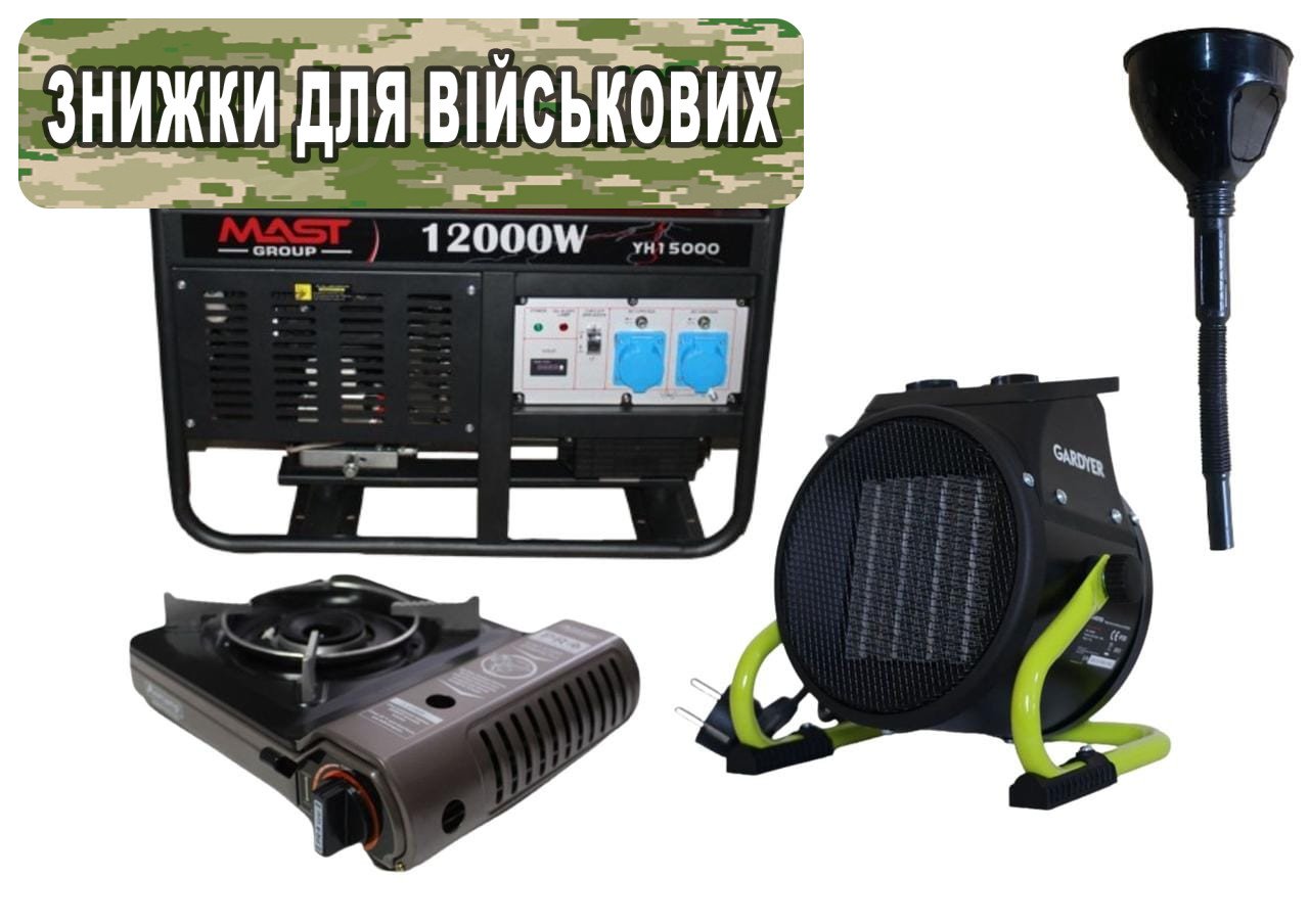 Бензиновий генератор MAST GROUP YH15000 + газова плитка Orcamp CK-505 + електричний обігрівач Gardyer HE2000