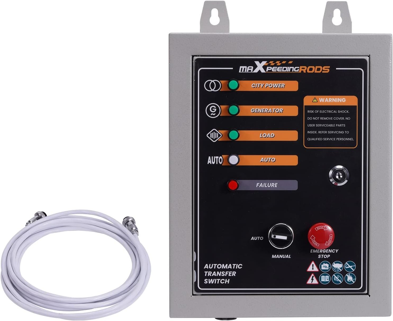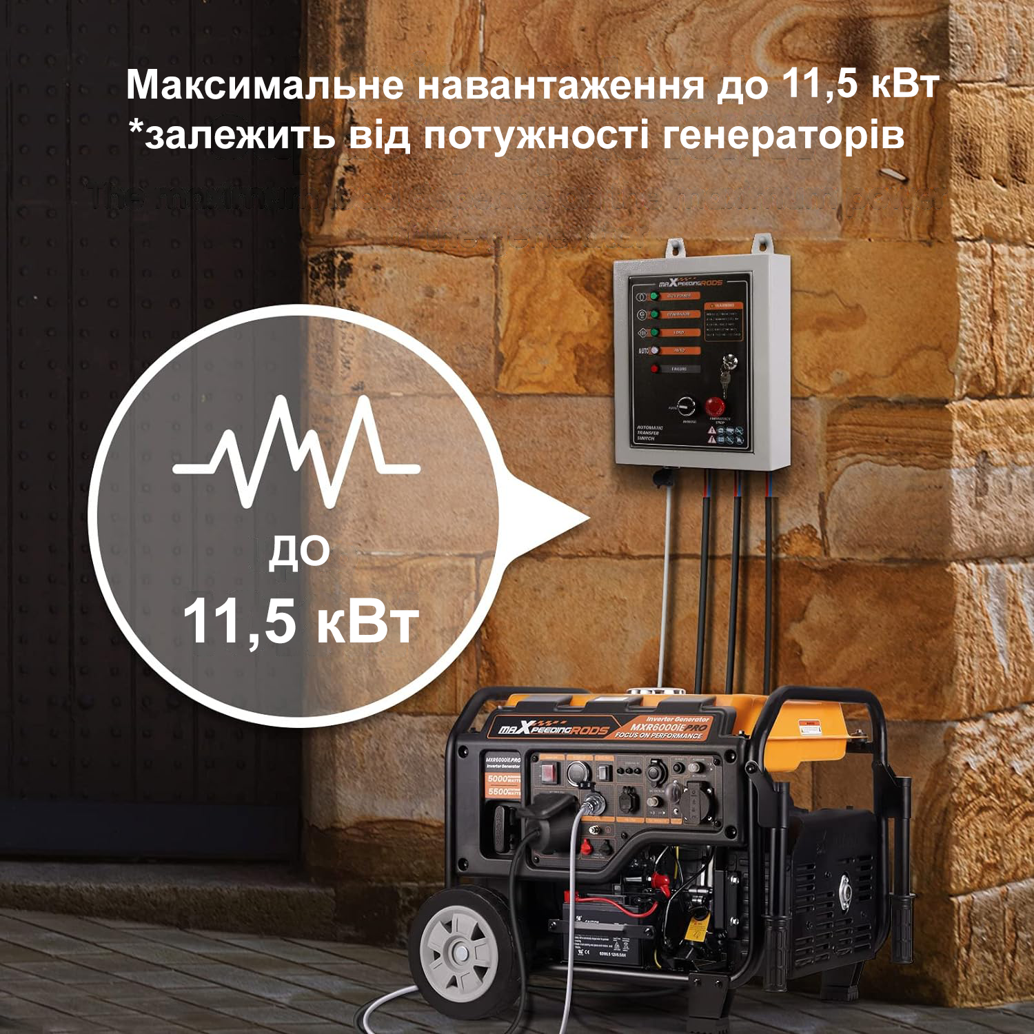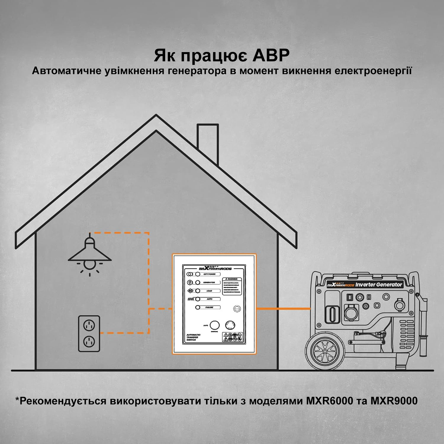 Блок автоматичного введення резерву (AВР) MaXpeedingRods ATS 4/25 автоматично запускає генератор і перемикає навантаження на нього при відключенні основного джерела живлення, та автоматично зупиняє роботу генератора при відновленні центрального електропостачання. Підходить для бензинових генераторів інверторного типу, що оснащені 7-піновим роз’ємом для підключення блоку автоматичного введення резерву (вхід для АВР). Сумісний з моделями MaXpeedingRods MXR6000 та MaXpeedingRods MXR9000.