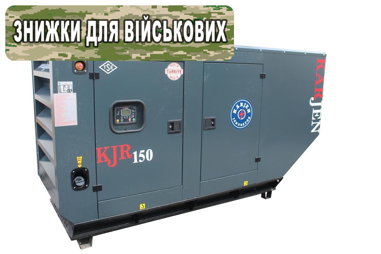 Дизельний генератор KARJEN KJR 150 KVA – це промислова електростанція для автономної та аварійної подачі електроенергії, яка застосовується для резервного користування на промислових підприємствах, цехах, офісах. У генераторах встановлені універсальні генераторні двигуни, які забезпечують високу продуктивність, низьку витрату палива, механічний або електронний регулятор залежно від типу.