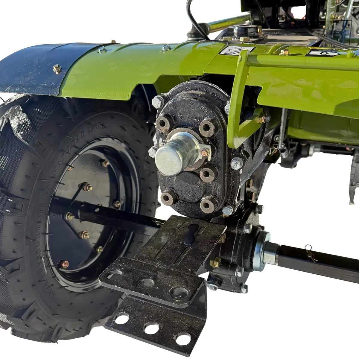 Модель комплектується передніми колесами 500-8 та задніми колесами 500-12. Вага техніки становить 280 кг. Також мінітрактор оснащений свинцево-кислотною батареєю 12V32AH.