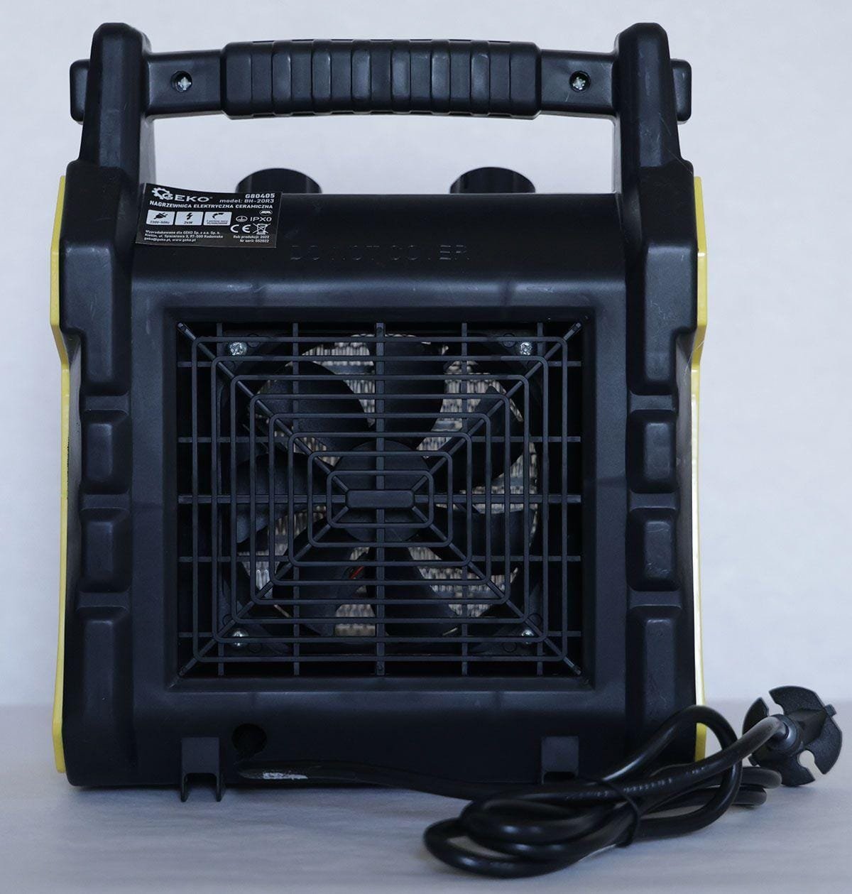 Електричний обігрівач потужністю 2кВт . Він оснащений керамічним нагрівальним елементом , який у поєднанні з сильним потоком повітря забезпечує швидкий нагрів приміщень, таких як магазини, майстерні, гаражі, домогосподарства тощо.