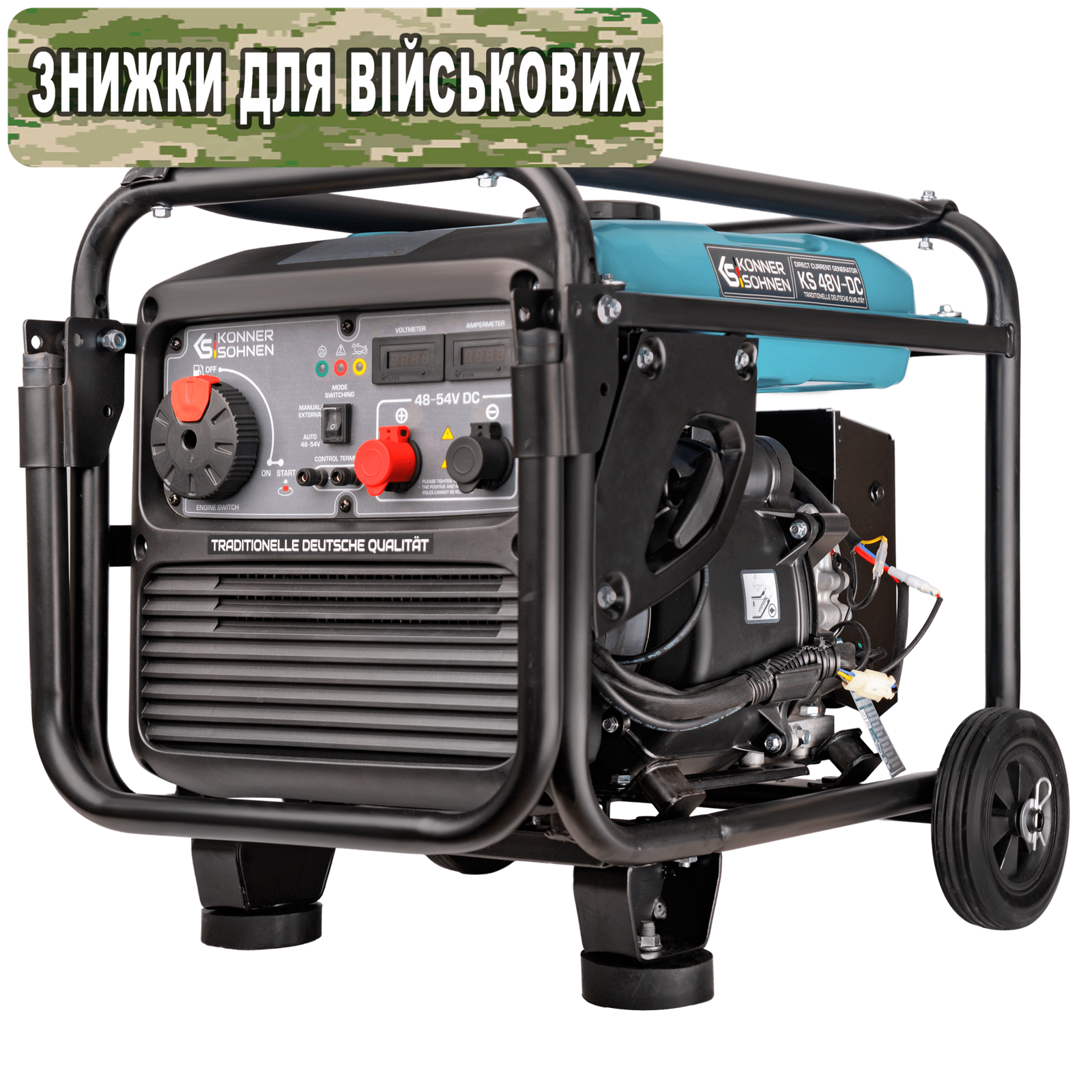 Генератор постійного струму KS 48V-DC німецької торгової марки Könner & Söhnen розроблений як резервний зарядний пристрій для зарядки акумуляторів 48-55В. Генератор ідеально підходить для зарядки акумуляторів в сфері забезпечення енергонезалежності приватних домогосподарств, для автономних, сонячних, вітрових, телекомунікаційних систем, човнів, кемпінгів тощо.
