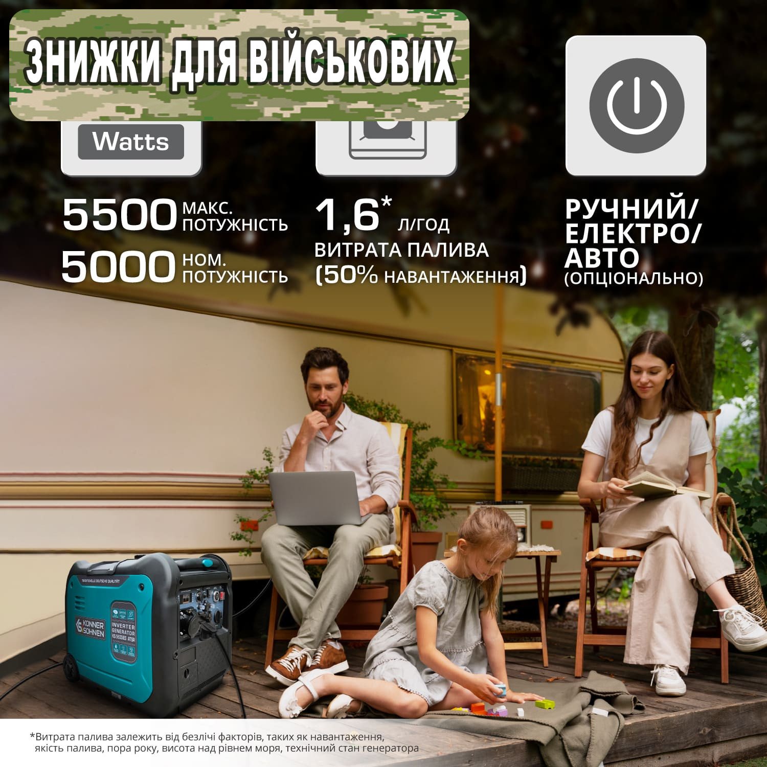 - Тиха робота та зручне керування: шумозахисний корпус забезпечує низький рівень шуму (66 дБ), що робить генератор комфортним для використання в будь-яких умовах, а ергономічна панель керування з LED-дисплеєм та USB-виходами забезпечує легкий доступ до всіх функцій.