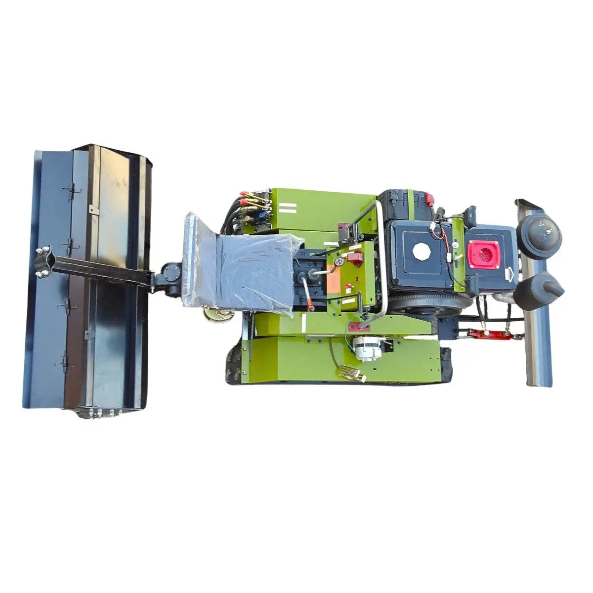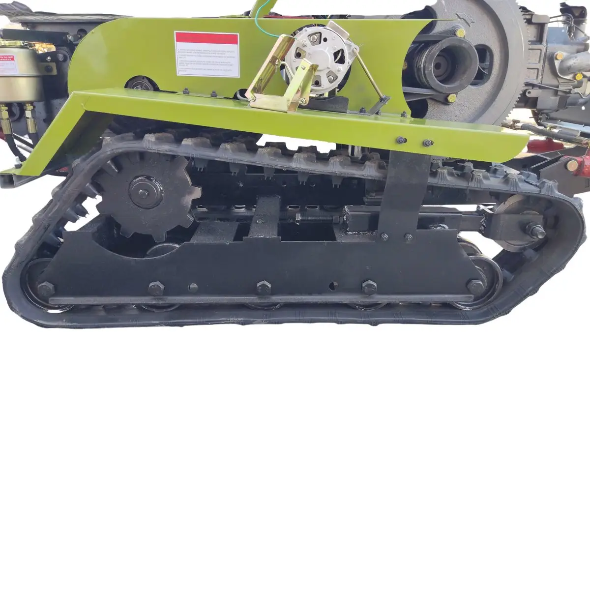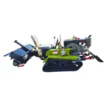 - Гусеничний хід — максимальна прохідність і низький тиск на ґрунт (не руйнує газон і не грузне в болоті).