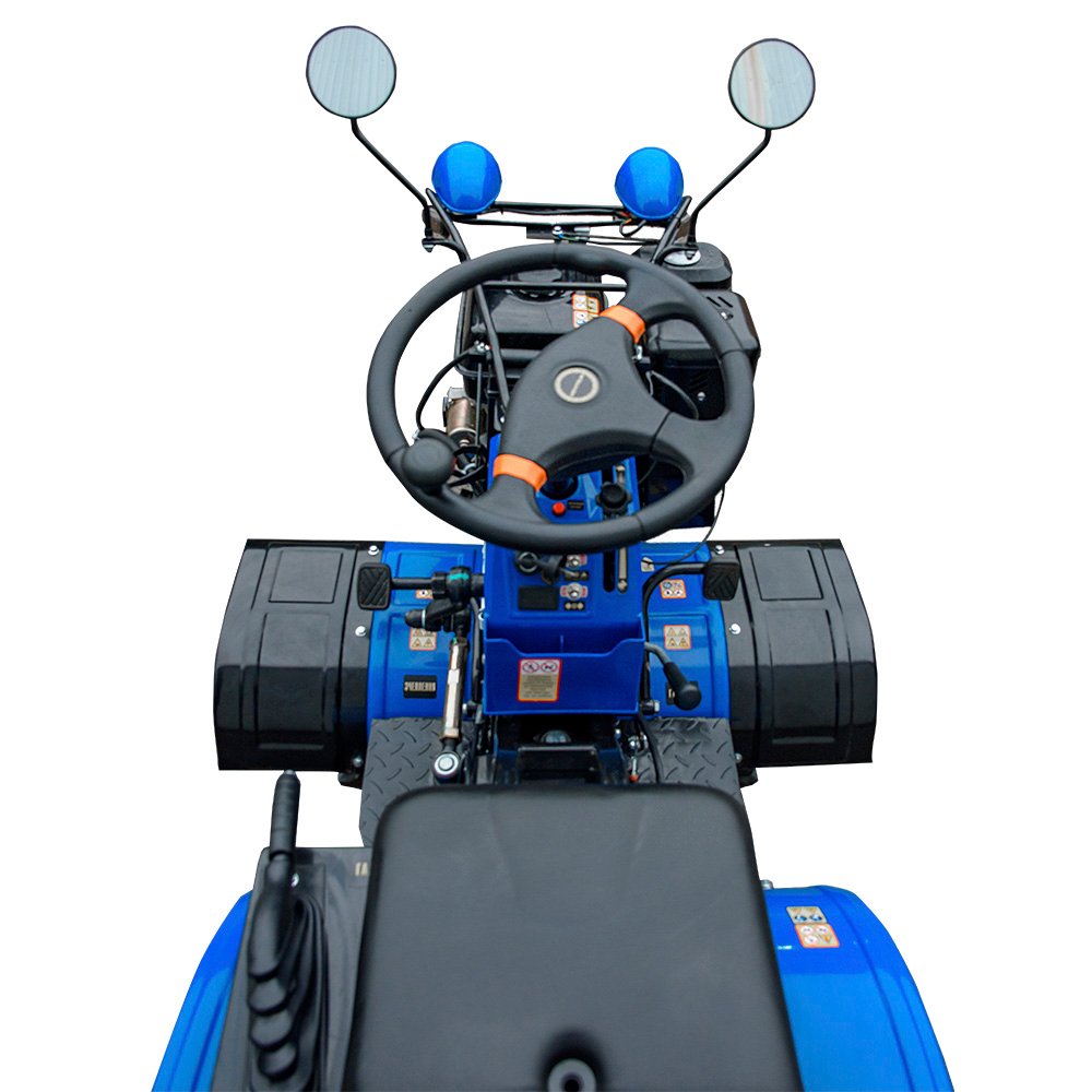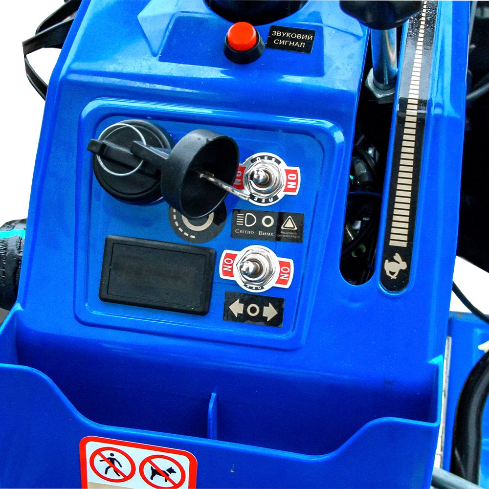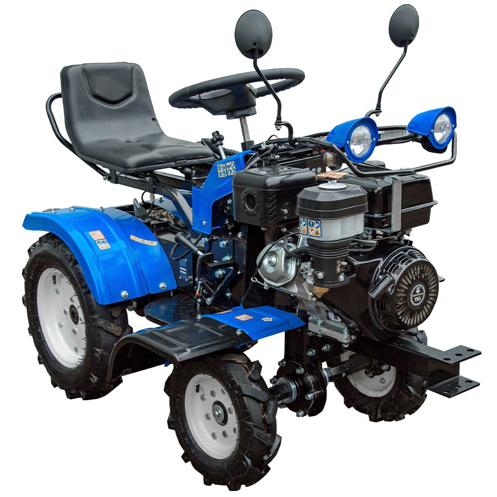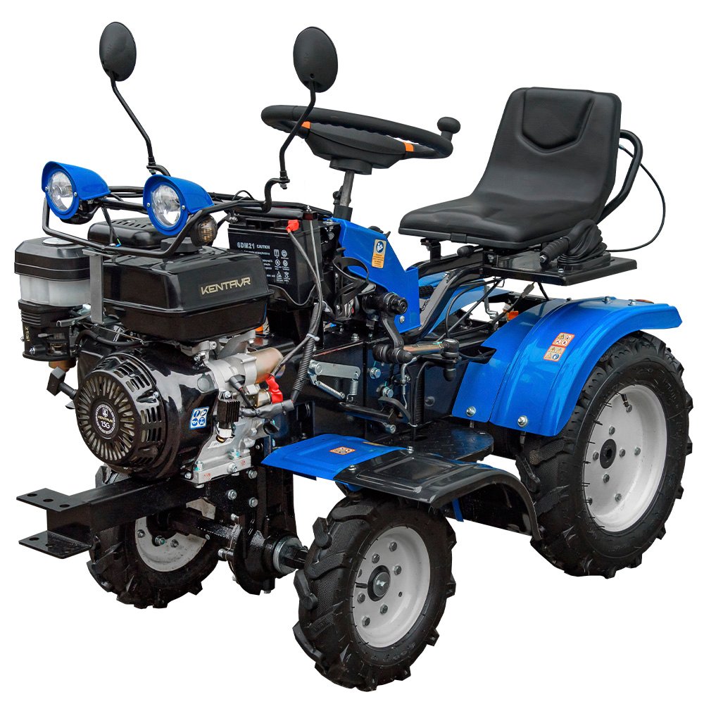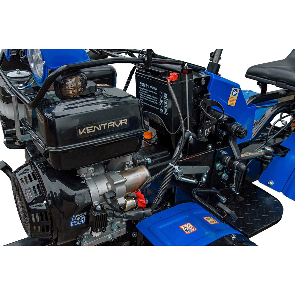 Мінітрактор KENTAVR 15G 4×4 бензиновий 15 к.с. — компактна та прохідна техніка для обробки городу, саду, теплиць і присадибної ділянки. Оснащений 4-тактним бензиновим двигуном 420 см³ потужністю 15 к.с., механічною шестеренчастою трансмісією 3+1 та повним приводом 4х4, що забезпечує краще зчеплення і впевнену роботу на пухкому, вологому та нерівному ґрунті. Завдяки невеликим габаритам і радіусу розвороту 2,3 ммототрактор зручний для роботи в обмеженому просторі. У комплекті: 2 фрези, 2 ґрунтозачепи, пристрій піднімання осі. Додатково оснащений передніми та задніми фарами, дзеркалами, аварійною сигналізацією, звуковим сигналом і металевими крилами.