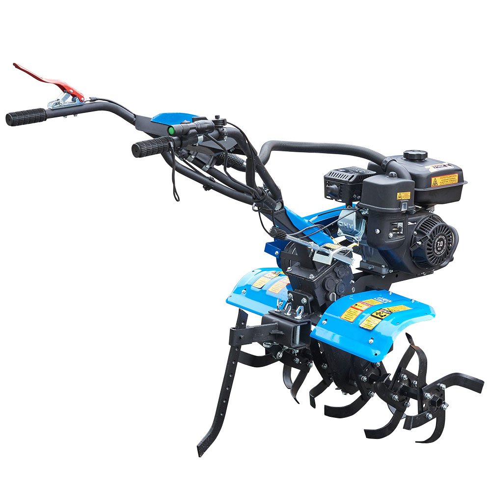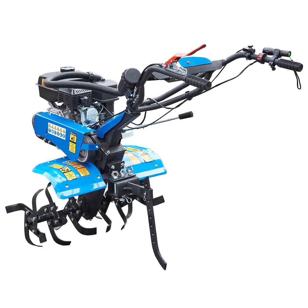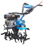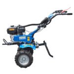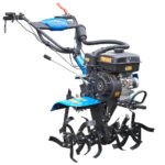 Мотоблок має ручний запуск, повітряне охолодження, місткий паливний бак 6 л і регульоване кермо по висоті та напрямку, що робить роботу комфортнішою для оператора. Великі колеса 4.00-8 забезпечують хорошу прохідність і стійкість під час роботи.
