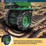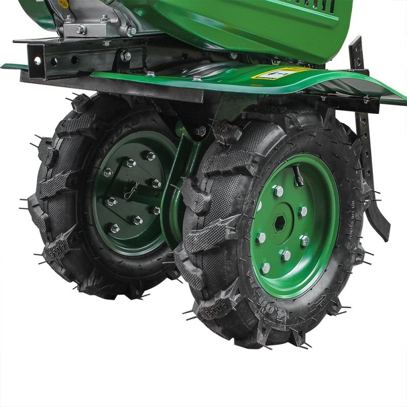 - Пневматичні колеса підвищеної прохідності. Масивні колеса з тракторним протектором забезпечують ідеальне зчеплення з ґрунтом та легке транспортування по бруду, калюжах та нерівностях.
