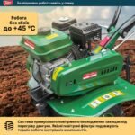 - Самохідна конструкція (2+1). 2 передачі вперед та 1 назад — культиватор рухається самостійно, вам залишається лише керувати напрямком. Задня передача дозволяє легко маневрувати на вузьких ділянках.