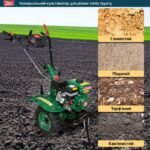 - Глибина культивації до 300 мм. Якісне переорювання, розпушування та аерація ґрунту навіть на важких та злежалих землях.