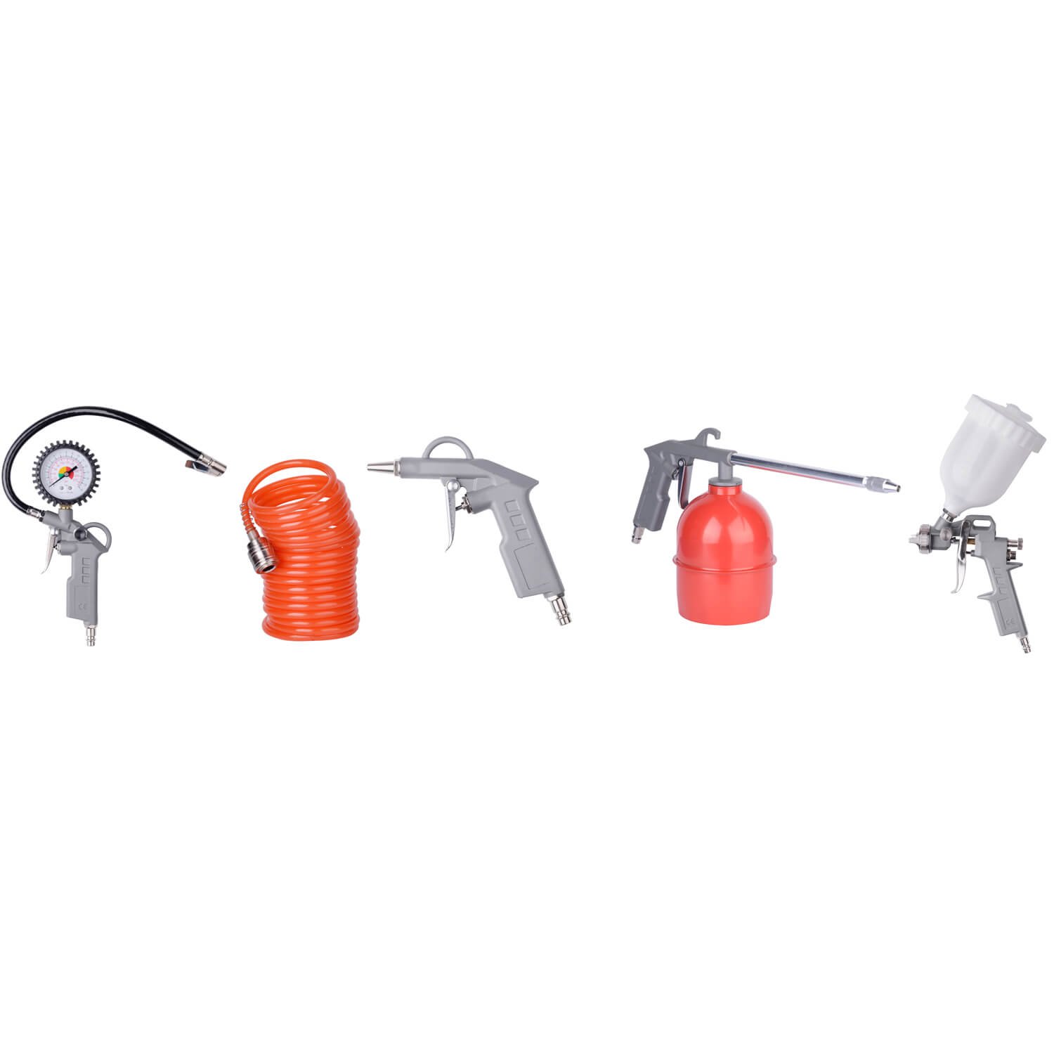 | Комплектація | Продувний пістолет. Миючий пістолет з баком. Пульверизатор для фарбування. Пістолет для підкачки коліс. Нейлоновий спіральний шланг з коннектором |