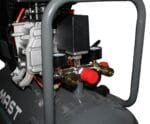 Робочий тиск цієї моделі компресора становить 6 Бар, максимальний – 8 Бар. Регулювання тиску плавне за допомогою редуктора, що дозволяє комфортно працювати без ривків і збоїв. Потужність 2,2 кВт забезпечує якісну роботу в умовах високих навантажень.