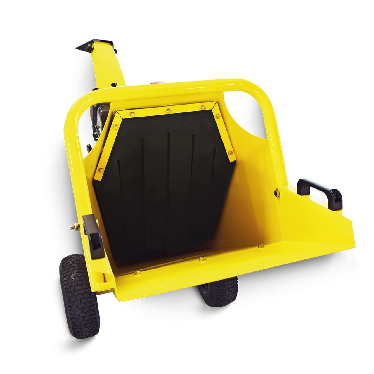 - Бункер подрібнювача, завдяки своєму становищу, дозволяє легко вставляти гілки, вони автоматично втягуються за допомогою дробильної системи;