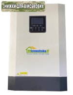 Сонячний фотоелектричний інвертор OFF-GRID PGF OG-5500 MPPT 5.5KW + WiFi є багатофункціональним інвертором та зарядним пристроєм, що поєднує в собі функції інвертора, сонячного зарядного пристрою з ШІМ (широтно-імпульсна модуляція) та зарядного пристрою для акумуляторів. Технічні дані Режим мережі Форма вхідної напруги – синусоїда (від мережі або генератора) Номінальна вхідна напруга – 230V AC Низька напруга відключення – 170 В змінного струму (ДБЖ), 90 В змінного струму (типові електричні пристрої) Максимальна вхідна змінна напруга – 300 В змінного струму Номінальна вхідна частота – 50 Гц / 60 Гц (автоматичне визначення) Захист виходу від короткого замикання – режим мережі: захист від перевантаження по струму; режим роботи від батареї: електронний захист Час перемикання – 10 мс (типовий ДБЖ); 20 мс (типовий – електричні пристрої) Зменшення вихідної потужності – коли вхідна напруга падає нижче 170 В змінного струму, вихідна потужність обмежується Інверторний режим Номінальна вихідна потужність – 5,5 кВА / 5,5 кВт – 5500 Вт Форма вхідної напруги – чиста синусоїда Номінальна вихідна напруга – 230В±5% Вихідна частота – 50 Гц Піковий ККД – 94% Миттєва пікова потужність – 2x номінальна потужність протягом 5 с – 11000 Вт Номінальна вхідна напруга – 48 В постійного струму Напруга постійного струму при холодному запуску – 48 В постійного струму Власне споживання – <50 Вт Власне споживання в режимі «економії» – приблизно 15 Вт Режим зарядки (зарядний пристрій) Струм зарядки (UPS) – 80 A – регулюється Напруга зарядки “BULK” – 58,4 В постійного струму (залиті батареї); 56,4 В постійного струму (герметичний, AGM, GEL) Напруга зарядки в режимі очікування – 54 В постійного струму Режим сонячної зарядки PWM Максимальний струм зарядки – 110 А Напруга відкриття струни Voc – 500 В постійного струму макс Напруга постійного струму – 17 В постійного струму Власні втрати (на випередження) – 2 Вт Максимальна напруга сонячних панелей (VOC): 500 В постійного струму (зверніть увагу, скільки панелей буде підключено) Ступінь захисту: IP21 Діапазон робочих температур: 0-55°C Клас захисту: I клас Гарантія: 2 роки Розміри – 47,2х29,7х13,3 см Вага – 10,7 кг Інтервали передачі даних 5 хвилин Функції та переваги Багатофункціональність: працює як інвертор змінного струму та зарядний пристрій постійного струму, об’єднує функції мережевого зарядного пристрою 230 В та сонячного контролера заряду Гнучкість у використанні: інвертор можна підключити до мережі або генератора енергії для зарядки акумуляторів або живлення пристроїв Підтримка батарей: необхідний акумулятор для роботи; мінімальна напруга для запуску – 20 В (від акумулятора) та 30 В (від панелей) Інтелектуальний заряд: автоматичний перезапуск після відновлення напруги, захист від перезаряду, перегріву, короткого замикання, інтелектуальний режим зарядки для тривалої роботи ШІМ-контролер: ефективно заряджає акумулятор, захист від сплесків, короткого замикання, перевантаження, зворотної полярності Підключення: може працювати без підключення до мережі, від акумуляторів та фотоелектричних панелей WiFi: вбудований модуль WiFi для дистанційного моніторингу через додаток для смартфона Додаток: мобільний додаток дозволяє вимірювати заощадження та контролювати роботу системи Використання Живлення домашніх та інших пристроїв: офісне обладнання, освітлювальне обладнання, обладн