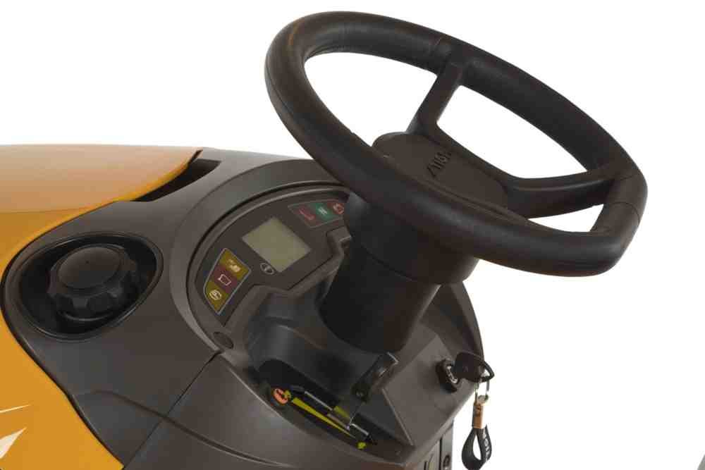 Керування трактором відбувається за допомогою гідростатичної трансмісії, яка забезпечує безступінчасте регулювання швидкості — рух відбувається плавно, а керувати можна лише однією педаллю. Це зручно при маневруванні навколо дерев, клумб або інших перешкод.
