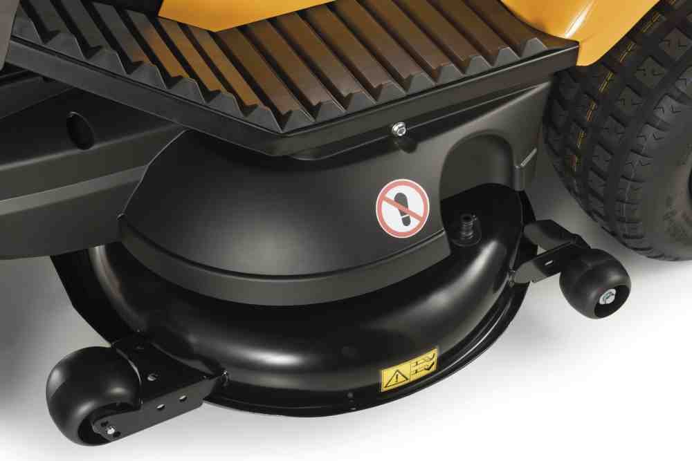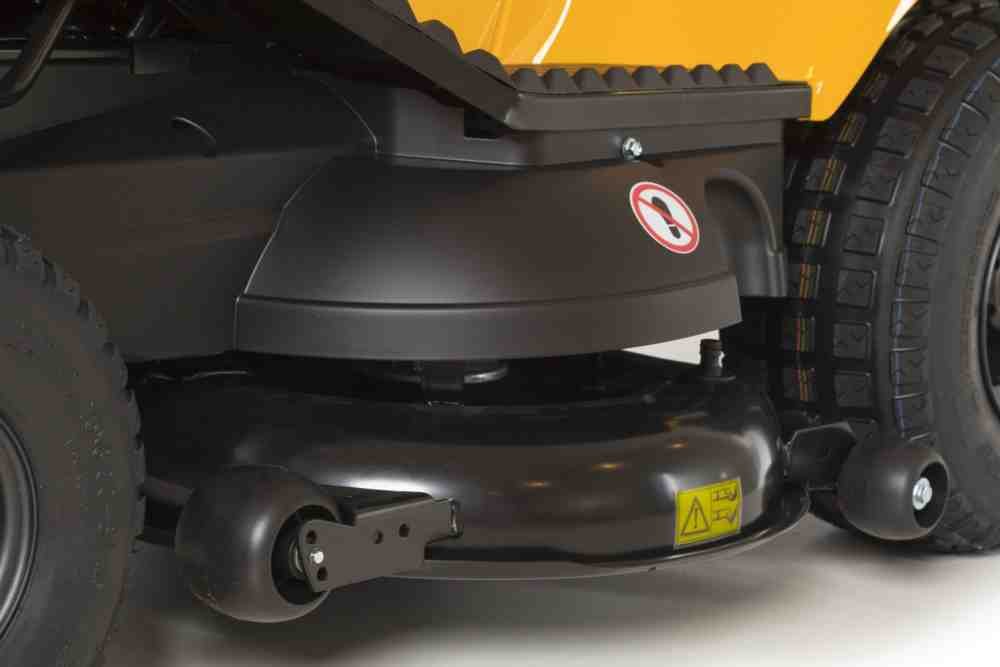 Широка дека з двома синхронізованими ножами має ширину захвату 102 см, що дозволяє швидко та рівномірно обробляти ділянки до 10 000 м². Висота косіння налаштовується централізовано в межах 30–90 мм через 7-позиційний важіль. Активація ножів виконується за допомогою електромагнітного зчеплення, що гарантує плавний старт без зношування ременів.