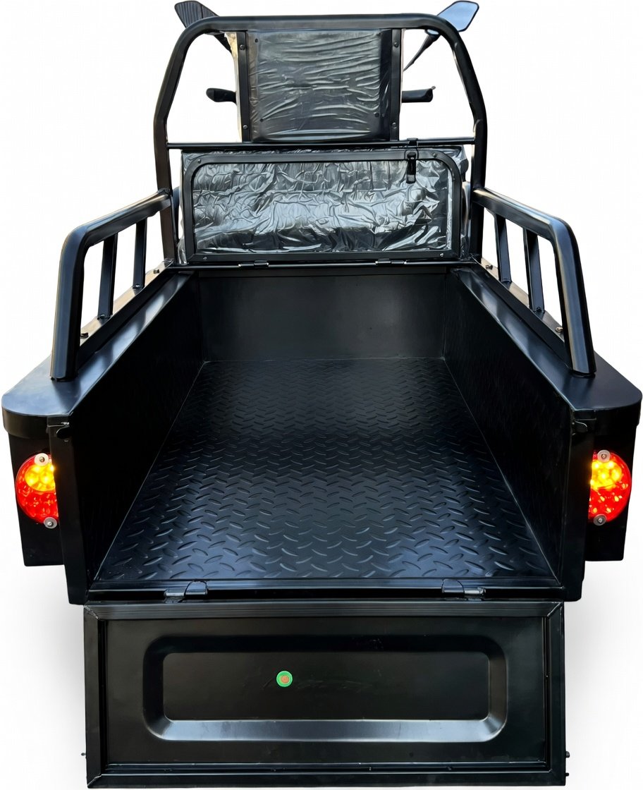 Повністю електричний — нуль викидів, низька витрата (зарядка від звичайної розетки) і майже нульне обслуговування. Лідер продажів серед вантажних трициклів для господарств!